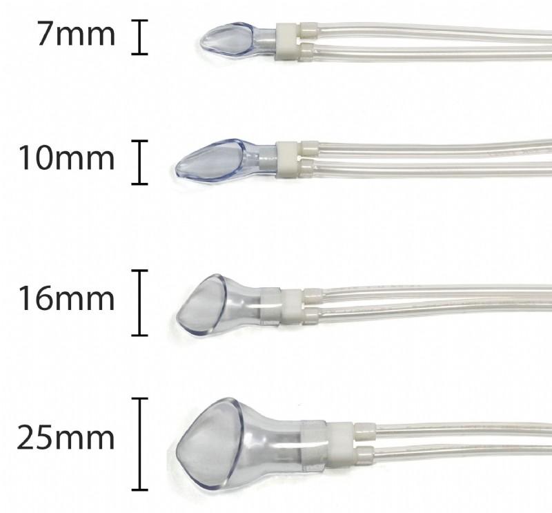 The Anesthesia Mask Nebulizer Delivery System connects easily to your anesthetic vaporizer to deliver aerosol to anesthetized animals. The included low-profile anesthesia mask fits closely over the animal's muzzle and directs aerosol through the anesthetic breathing circuit. Available mask sizes: