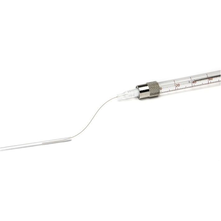 The MicroFil's tip elasticity is sturdy and very flexible though not unbreakable. Since it is more flexible than stainless steel needles, moderate bending will not block or damage the MicroFil needle. The combination of plastic and fused silica in the MicroFil tip is sturdier than plastic tips, allowing easy and repeated insertions into micropipettes. MicroFil's luer fitting allows easy coupling to syringes and syringe filters.